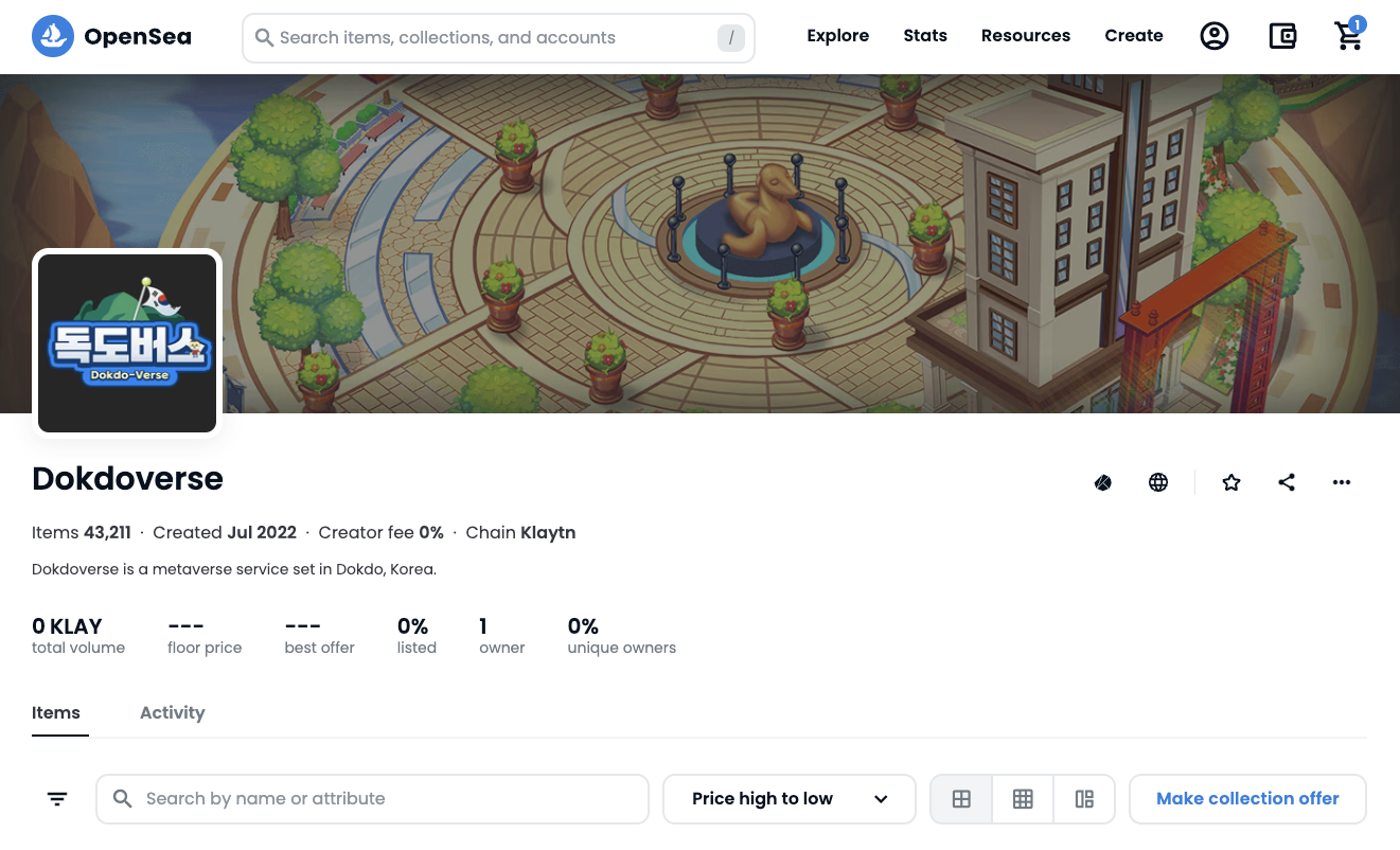 흥미로운 점은 벌써 독도버스 NFT가 오픈씨에 등록되어있다는 점이다.