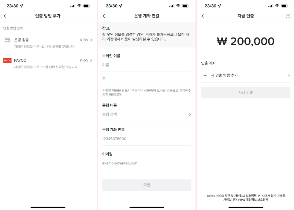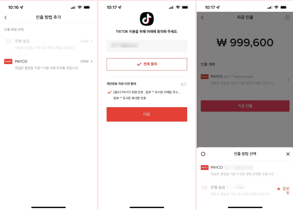 틱톡에 페이코 계정을 연결하고 인출방법을 바꾸었다.