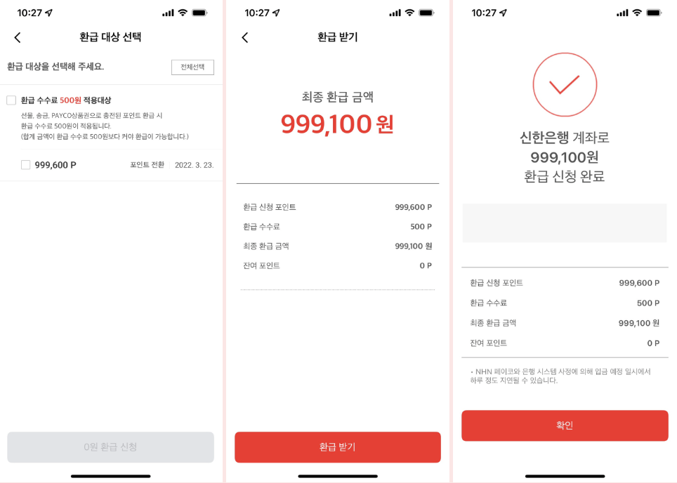 전부 환급 받기로 했고, 환급 수수료는 페이코가 500원 챙겨갔다.